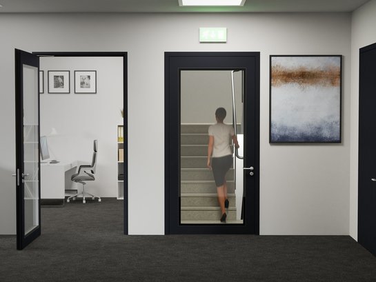 Zlicowane drzwi stalowe do zastosowań wewnętrznych łączą wysokie standardy architektoniczne z wymaganiami technicznymi w zakresie wygody i bezpieczeństwa. Dzięki wewnętrznym zawiasom, zintegrowanemu samozamykaczowi i zlicowanemu skrzydłu te wielofunkcyjne drzwi stają się purystycznym elementem konstrukcji każdego budynku. Ukryte funkcje, jak ochrona przeciwpożarowa, ochrona przed dymem, izolacja akustyczna i ochrona przed włamaniem, mogą być łączone w dowolnej kombinacji i zapewniają najlepsze możliwe bezpieczeństwo.